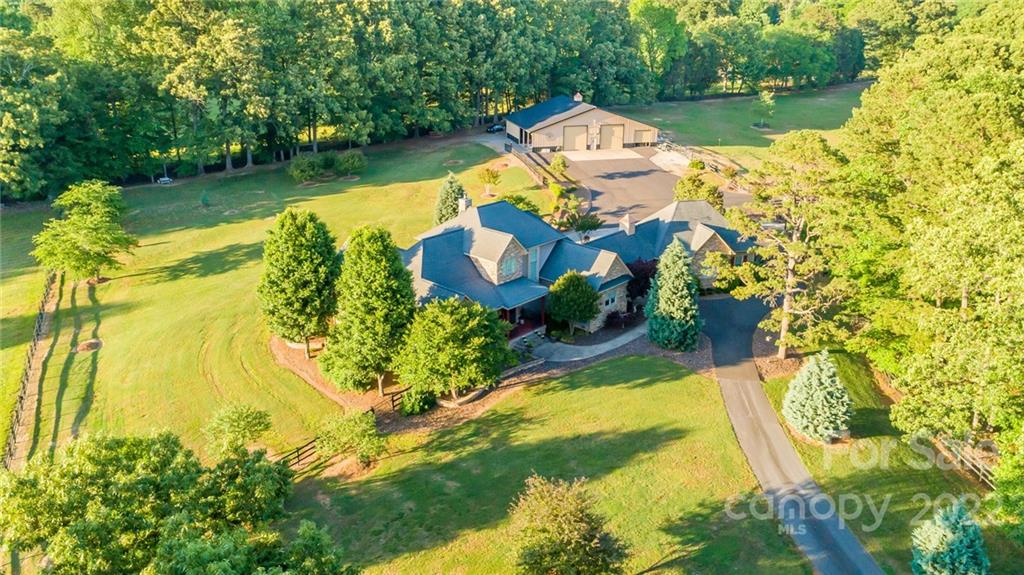 Your Dream Country Estate in Iron Station awaits! Live your dream on this double gated 8 acre estate just a few minutes from Lake Norman & quick commute Charlotte & airport. You will be captivated from the moment you enter the driveway towards this beautiful 4,107 sqft home featuring an attached 3 car garage. This stately property is a rare find, situated in a gorgeous park-like setting & includes a 3,250 sqft Morton insulated outbuilding with 14′ doors to accommodate an RV or large boat is complete with an office with built-ins & full bath. The barn includes 4 stalls, tack room, hay crib, loft & multiple pastures. The home features tall ceilings, open floor plan, exquisite details throughout, Brazilian cherry floors & a 1st floor Primary suite with luxury bath. The kitchen boasts beautiful granite, a large gas cooktop, JennAir appliances, GE wine cooler, warming drawer & walk-in pantry. Entertainment is a snap in the large screen porch, outdoor built-in cooking area & fire pit.